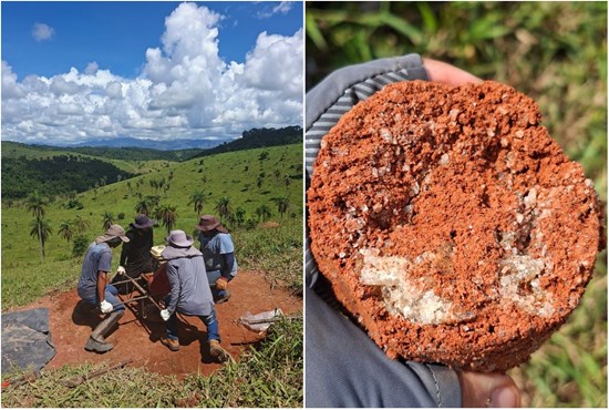 Figure 2: Auger drilling at Penelope (left) and REE-enriched regolith core (right).